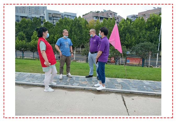 防汛愛心小組成員與抗洪一線人員交談