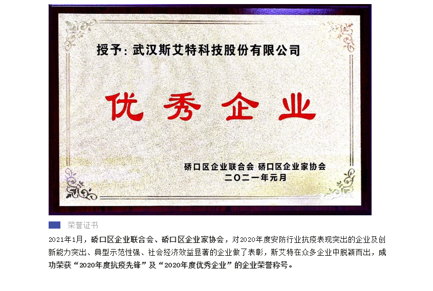祝賀|斯艾特獲評2020年度“抗疫先鋒”及“優(yōu)秀企業(yè)”榮譽(yù)稱號