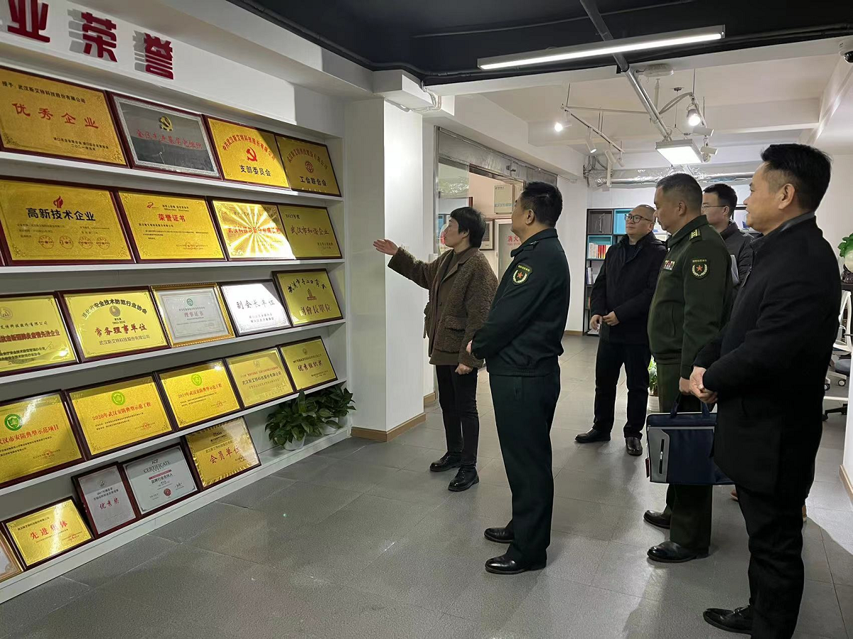 2023年12月29日,武漢市硚口區(qū)人民武裝部部長陳登朧一行,在長豐街道人民武裝部部長鄒敬碩的陪同下蒞臨我司考察指導(dǎo),并就民兵編組工作進行了調(diào)研和部署。公司董事長兼總經(jīng)理張濤、副總經(jīng)理張厚元、行政人事部總監(jiān)向麗等人熱情接待。