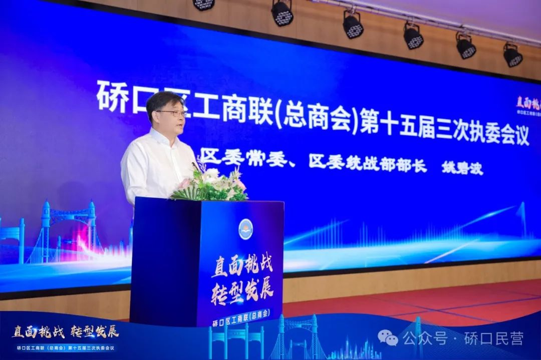 這次大會(huì)是在全區(qū)推動(dòng)民營(yíng)企業(yè)轉(zhuǎn)型升級(jí),提升民營(yíng)企業(yè)核心競(jìng)爭(zhēng)力,實(shí)現(xiàn)高質(zhì)量可持續(xù)發(fā)展的新形勢(shì)下召開的一次重要會(huì)議。會(huì)上,區(qū)工商聯(lián)主席、區(qū)總商會(huì)會(huì)長(zhǎng)周云忠作了《硚口區(qū)工商聯(lián)第十五屆三次執(zhí)委會(huì)工作報(bào)告》,區(qū)委統(tǒng)戰(zhàn)部副部長(zhǎng)、區(qū)工商聯(lián)黨組書記劉軍宣讀了《硚口區(qū)工商聯(lián)(總商會(huì))第十五屆三次執(zhí)委會(huì)界中調(diào)整建議名單》,增補(bǔ)副主席3名,因工作變動(dòng)調(diào)整2名,調(diào)出副會(huì)長(zhǎng)1名,新加入執(zhí)委企業(yè)10名。會(huì)議還審議通過了《硚口區(qū)工商聯(lián)第十五屆三次執(zhí)委會(huì)調(diào)整方案》及武漢市光彩會(huì)硚口分會(huì)換屆事項(xiàng),選舉產(chǎn)生了武漢市光彩事業(yè)促進(jìn)會(huì)硚口分會(huì)第二屆理事會(huì)理事43名、會(huì)長(zhǎng)1名、副會(huì)長(zhǎng)11名、秘書長(zhǎng)(兼任)1名。表彰了區(qū)工商聯(lián)(總商會(huì))2023年度優(yōu)秀執(zhí)委企業(yè)和基層商會(huì)。