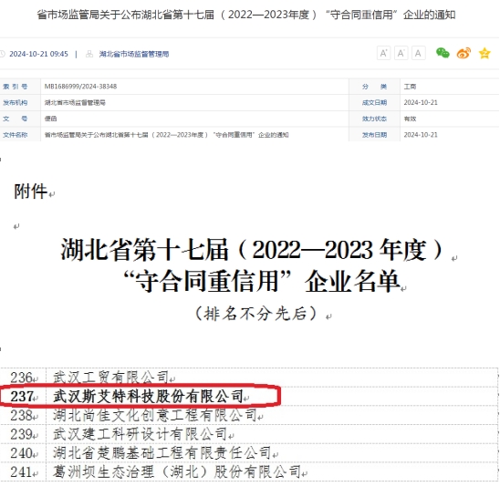 我司獲評2022-2023年度武漢市及湖北省“守合同重信用企業(yè)”榮譽是對我們企業(yè)信用管理的肯定,也是對我們堅持誠信經(jīng)營理念的認可。未來我們將繼續(xù)秉承這一理念,不斷提升企業(yè)的信用管理水平、優(yōu)化服務(wù)流程,確保每一項業(yè)務(wù)都能在合同框架內(nèi)高效、高質(zhì)量完成。同時,我們將積極履行社會責(zé)任,為推動行業(yè)健康、穩(wěn)定發(fā)展做出新貢獻。