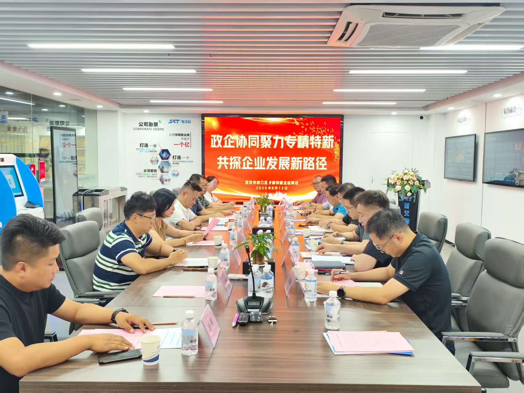 8月13日,區(qū)委常委、區(qū)政府副區(qū)長蘇新威、區(qū)工商聯(lián)、區(qū)經(jīng)科局、區(qū)商務(wù)局、區(qū)產(chǎn)發(fā)公司(籌)等部門領(lǐng)導(dǎo)蒞臨武漢市硚口區(qū)專精特新企業(yè)商會會長單位——武漢斯艾特科技股份有限公司(以下簡稱“斯艾特科技”)開展“政企協(xié)同聚力專精特新,共探企業(yè)發(fā)展新路徑”調(diào)研座談會。本次會議由硚口區(qū)工商聯(lián)主席周云忠主持。武漢市硚口區(qū)專精特新企業(yè)商會會長、武漢斯艾特科技股份有限公司董事長張濤與武漢市硚口區(qū)專精特新企業(yè)商會秘書長一同參加了本次調(diào)研座談會。